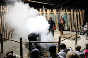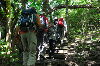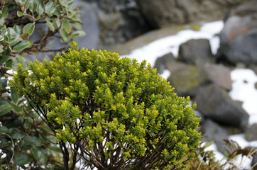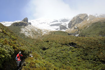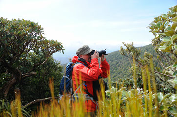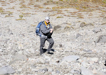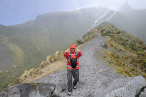 Leider hüllte sich der Berg während unseres Aufenthalts mehr oder weniger in Wolken. Was bei einer jährlichen Niederschlagsmenge von 8.000 mm in der Gipfelregion eigentlich nicht verwundert. Bei unsere Wanderung in die höheren Regionen mussten wir in etwa 1.400 Meter Höhe wegen der winterlichen Bedingungen, mit starken Winden und einer geschlossenen Schneedecke, umkehren.