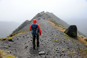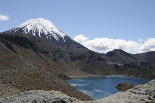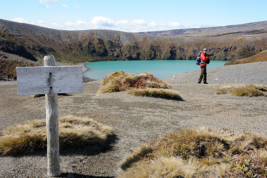 Am zweiten Tag unseres Aufenthalts hatten wir endlich besseres Wetter. Da die Bedingungen in den höheren Lagen weiterhin schwierig waren, entschieden wir uns zu einer Wanderung zu den niedriger gelegenen Tama Lakes. Der Wanderweg führte uns zu einem Berggrat (1430 m) zwischen zwei Kraterseen. Von dort und während des Aufstiegs bot sich ein grandioser Ausblick auf die zwei höchsten Berge des Nationalparks, den Mt. Ruapehu (2.797 m) und den Mt. Ngauruhoe (2.291 m). Bei den beiden Bergen handelt es sich um zwei aktive Vulkane. Der Mt. Ngauruhoe ist nur ein Ableger des kleineren Mt. Tongariro und erst vor etwa 2.500 Jahren entstanden.