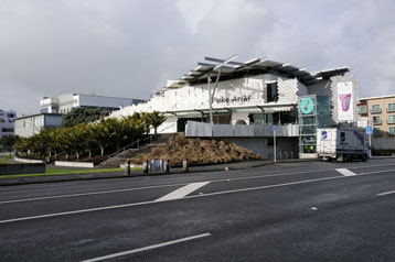 Da sich das Wetter nur langsam besserte besuchten wir am zweiten Tag das neu und modern eingerichtete Nationalmuseum Te PaPa. Das extravagante Gebäude greift in seiner Architektur das große Problem der Stadt auf. Eine graue Wand symbolisiert die Wellington Faultline - eine Erdbebenspalte die sich quer über das gesamte Stadtgebiet zieht. Alle neuen Gebäude müssen aus diesem Grund erdbebensicher gebaut werden. Historische Gebäude wurden, mit teilweise erheblichem Aufwand, nachgerüstet. Am Abend stand ein Kinobesuch im Embassy Theatre auf dem Programm. Dort fand auch die Premierenfeier zu "Die Rückkehr des Königs" an.