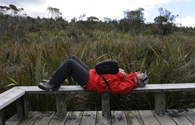 Dafür wurden wir mit einigen sehr schönen Spaziergängen im Urwald am Fuß des Berges entschädigt. Am beeindruckendsten war ein dicht mit Flechten und Moosen bewachsener Wald am Rande eines Sumpfes. Einen starken Kontrast hierzu bildete eine Wanderung um einen Stausee mit einer Pflanzung von kalifornischen Redwoodbäumen.