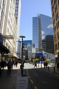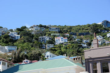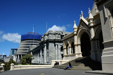 Am dritten Tag hatten sich auch die letzten Reste des Unwetters verzogen. Eine Wanderung führte uns vom Mt. Victoria quer durch die Stadt bis zur Kelburn Station beim Botanischen Garten. Durch die Haupteinkaufsstraßen und vorbei am Regierungsviertel.