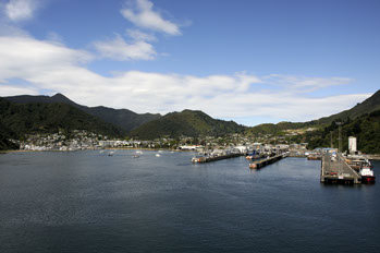 Heute überquerten wir auf dem Weg zur Südinsel die Cook Strait. Diese Meerenge zwischen der Tasmansee und dem Pazifik trennt die Nord- und Südinsel Neuseelands. Die Meerenge ist für ihre stürmischen Winde berüchtigt. Zu unserem Glück bekamen wir davon nichts zu spüren. Die Fähre brachte uns bei bestem Wetter durch die malerischen Fjorde der Marlborough Sounds nach Picton.