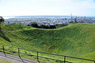 Am zweiten Tag sind wir auf dem Coast to Coast Walkway vom Pazifik zur Tasman See gewandert. Die Wanderung führt durch die großen Parks der Stadt (Albert Park, Auckland Domain Park und Cornwell Park) und über die höchste Erhebung der Stadt den Mount Eden(196 m). Der Mount Eden ist, wie die meisten anderen Hügel im Stadtgebiet, ein erloschener Vulkan. Im Bild oben ist der typische Vulkankrater deutlich zu erkennen. Von dort hat man bei klarem Wetter eine grandiose Aussicht über das Stadtgebiet bis zum Hauraki Gulf. Gut zu sehen ist auch das Eden Park Stadion in dem die All Blacks 2011 die Rugby-Weltmeisterschaft gewonnen haben.