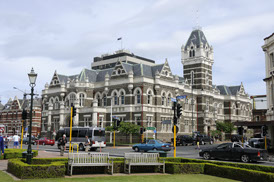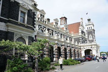 An einem sonnigen Tag erreichten wir die zweitgrößte Stadt der Südinsel (120.000 Einwohner), das Zentrum der Region Otago. Dunedin wurde von schottischen Siedlern gegründet. Der Name leitet sich aus dem gälischen Namen von Edinburgh (Dûn Eidânn) ab. Die schottisch-englischen Wurzeln sind in den historischen Bauten der Stadt unschwer zu erkennen. Besonders sehenswert ist der alte Bahnhof der Stadt, der heute allerdings nur noch für eine touristische Bahnstrecke genutzt wird, sowie die Kirchen und Repräsentationsbauten im Zentrum.