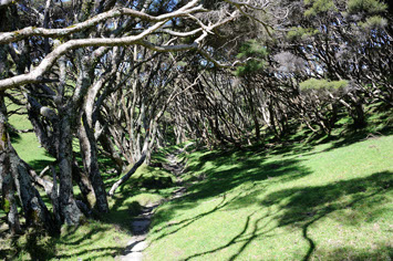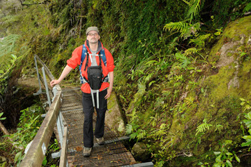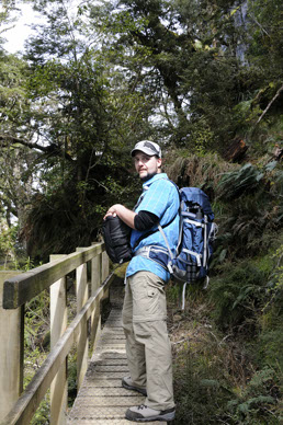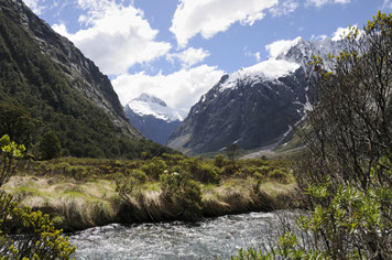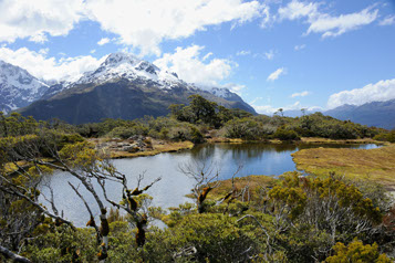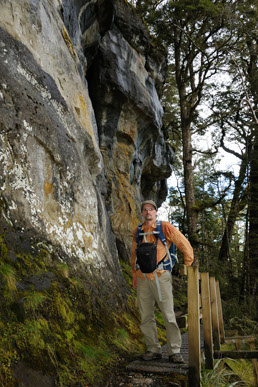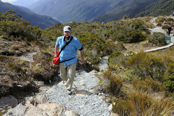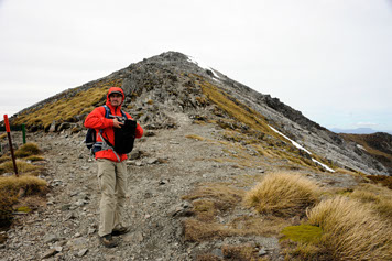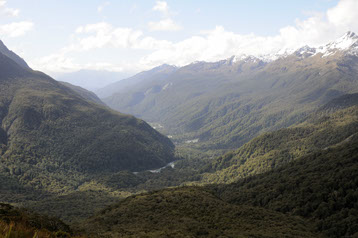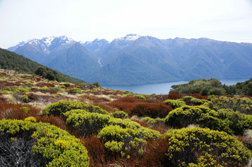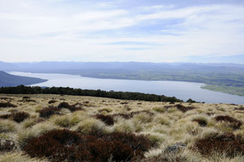 Am zweiten Tag in Te Anau unternahmen wir eine Tageswanderung auf einem der schönsten Teilstücke des Kepler Track. Dazu setzten wir zunächst mit dem Boot zur Brod Bay (200 m) über. Von dort ging es durch dichten Bergwald stetig aufwärts. Auf etwa 1.000 Metern erreichten wir die Baumgrenze. Die Landschaft hier wird durch Tussockgras geprägt, dazwischen liegen Hochmoore und kleine Tümpel. Bei der Mt. Luxmore Hut, einer Schutzhütte für Mehrtagestouren, legten wir eine kurze Mittagsrast ein. Ab ca. 1300 m ging der immer noch gut ausgebaute Weg an der Bergflanke entlang durch breite Geröllfelder. Auf den letzten Metern zum Gipfel des Mt. Luxmore (1.472 m) mussten wir uns selbst einen Weg durch ein Geröllfeld suchen.