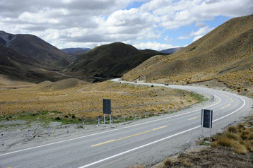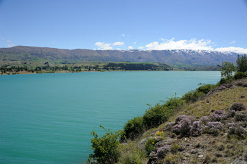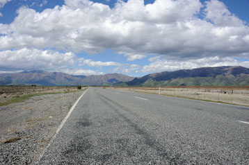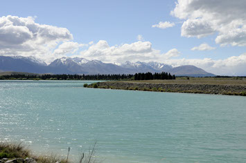 Die Straße führte uns über eine Hochebene mit mehreren Pässen und vorbei an endlosen Ebenen mit Tussockgräsern (und ebenfalls endlosen Schafweiden). Insbesondere die Region um Twizel wird außerdem durch viele künstliche Stauseen geprägt. In dieser Region wird mit Wasserkraftwerken fast ein drittel des Energiebedarfs des Landes gedeckt. In den künstlichen Seen wird außerdem ein hervorragender Lachs gezüchtet (ratet mal, was es am nächsten Morgen zum Frühstück gab).