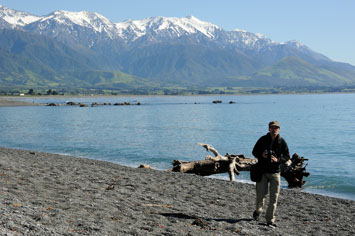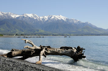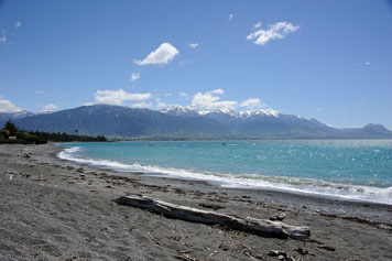 Unsere nächste Etappe empfiehlt sich für alle die sich nicht entscheiden können, ob der Urlaub in die Berge oder ans Meer gehen soll. Der Küstenort Kaikoura zählt zweitausend Einwohnern und liegt in unmittelbarer nähen eines Gebirgszugs. Der höchste Berg, der Tapuae-o-Uenuku, misst 2885 m. Direkt vor der Küste fällt der Boden dann auf über 1.000 Meter Tiefe ab. Günstige Meeresströmungen sorgen für einen großen Fischreichtum. Der Name Kaikoura bedeutet übrigens "Mahl von Langusten". Diese sind hier so zahlreich, dass sie als (teurer) Straßenimbiss verkauft werden.