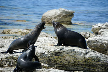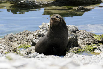 Neben den Walen, Delfinen und Albatrossen gibt es in Kaikoura noch eine weitere Attraktion. Am Ende der Halbinsel gibt es einen Wanderweg, der zu einer Robbenkolonie führt. Dort lassen sich Pelzrobben und Seevögel aus nächster Nähe beobachten.