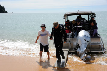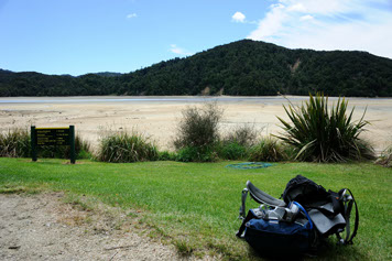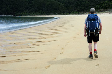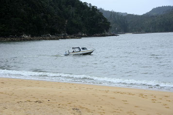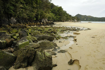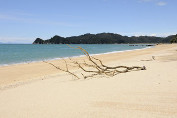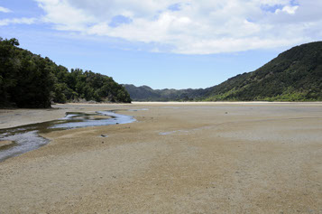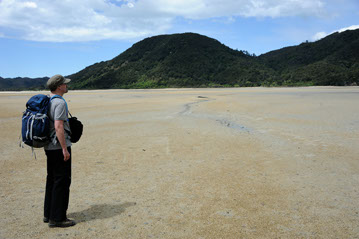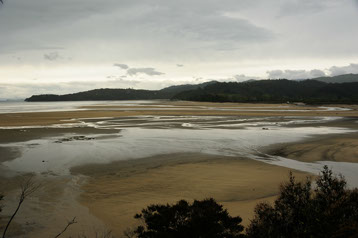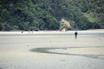 Zu unserer zweiten Wanderung im Abel Tasman NP ließen wir uns vom Wassertaxi in Totaranui absetzen und am Onetahuti Beach wieder abholen. Während der Bootsfahrt konnten wir Pelzrobben, Delphine und verschiedene Seevögel beobachten. Von Totaranui aus ging es dann auf dem Coast Track immer dicht an der Küste entlang nach Süden. Höhepunkt der Wanderung war die Durchquerung einer breiten Wattfläche bei der Awaroa Bay. Nur bei Niedrigwasserstand kann diese Stelle durchwatet werden.