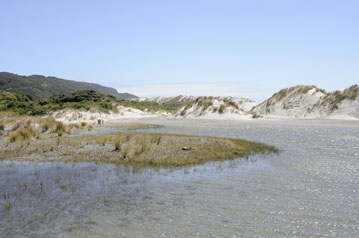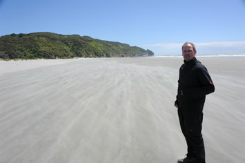 Unser letzter Ausflug führte uns von Motueka über die Takaka Hills zur Golden Bay und dem Farewell Spit. Der Farewell Spit ist eine ca. 30 km lange Dünennehrung. An dieser Stelle verließ James Cook 1770 Neuseeland.