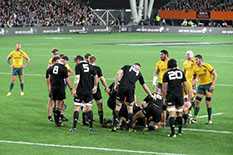 In Dunedin begegneten sich am Abend die All Blacks (Neuseeland) und die Wallabis (Australien) in einem Rugby-Test-Match. Das Spiel fand im ausverkauften Forsyth Barr Stadium vor fast 30.000 Fans statt. In einer temporeichen und intensiven Begegnung siegten die All Blacks ungefährdet mit 41:33.