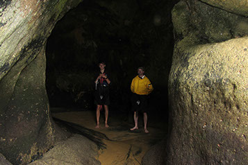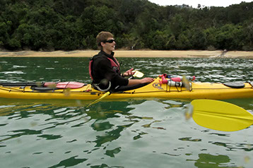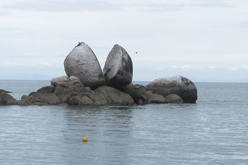 Am ersten Tag paddelten wir mit Kajaks an der Küste entlang. Zu einigen der Felsformationen hatte unser Guide interessante Geschichten auf Lager. Zu der in der Mitte zerbrochenen Steinkugel erzählen die Maori, dass es über den Besitz dieses Felsen zu einem Streit der Götter kam. Der Gott des Meeres und der Gott des Landes konnten sich nicht einigen, wem der Felsen gehört. So kam es zu Erdbeben und Überflutungen. Die Maori an der Küste hatten schwer darunter zu leiden. Bis ihr Häuptling den Stein mit einem Speerwurf in zwei Hälften teilte und sich die Götter damit zufrieden gaben.